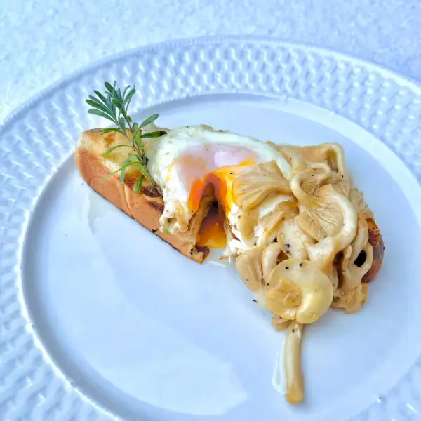 Montage : à l’aide d’une écumoire, retirez les pleurotes du beurre et déposez une généreuse portion sur chaque tranche de pain grillé. Ajoutez un œuf par-dessus, garnissez d’herbes fraîches et dégustez immédiatement !