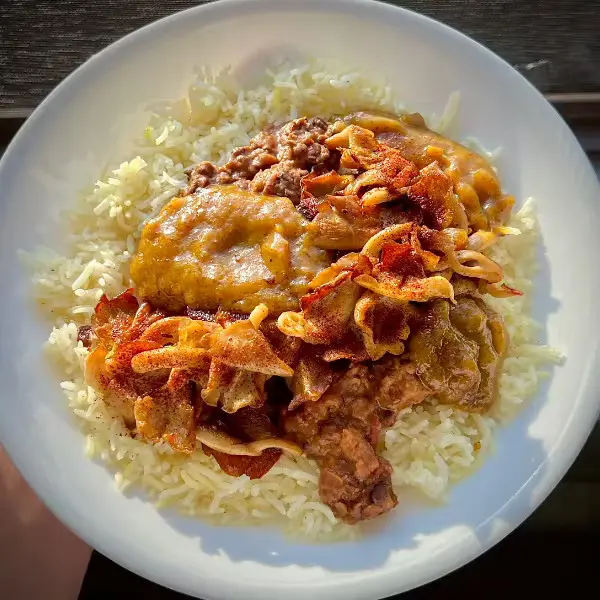 Préparation des épices : dans une poêle, faites chauffer 2 cuillères à soupe d’huile végétale. Ajoutez l’oignon et faites-le revenir jusqu’à ce qu’il soit doré. Ajoutez l’ail, le gingembre et les épices en poudre (curcuma, cumin, coriandre, garam masala, piment). Faites revenir brièvement pour libérer les arômes.
