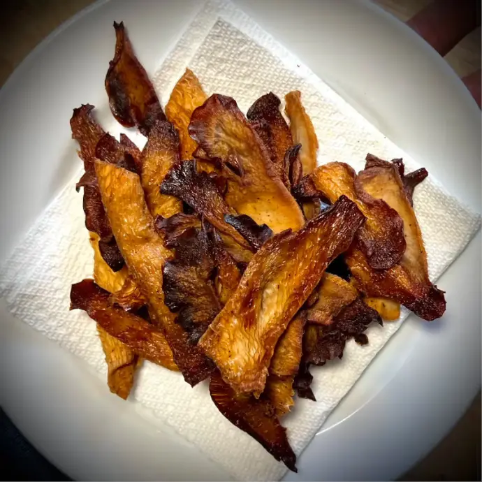 Sortez les pleurotes "bacon" du four et laissez-les refroidir quelques minutes avant de déguster.