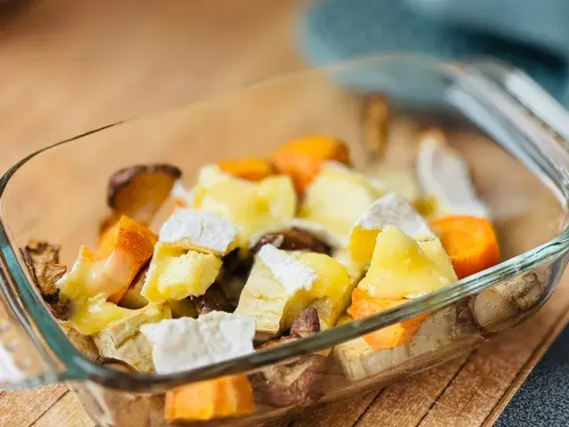 Enfourner pour 20 minutes puis ajouter le camembert coupé en morceaux et remettre 5 minutes au four jusqu'à ce que le fromage commence à fondre.